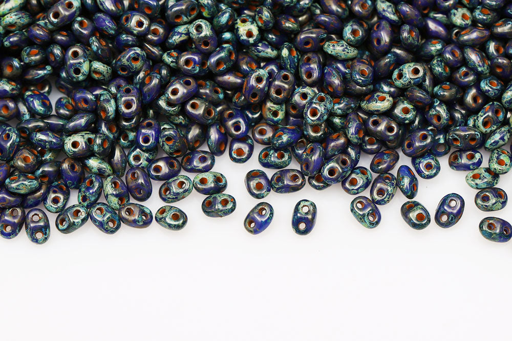 Miniduo 2×4mm Opaque Blue Travertin Dark 2-Hole Czech Beads