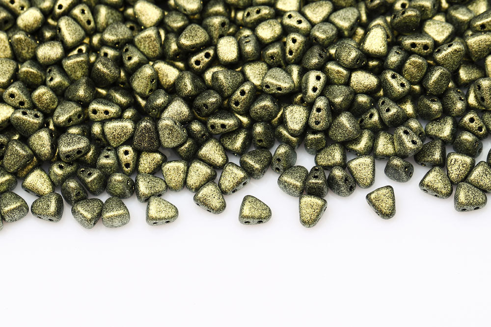 Nib-Bit 6×5mm Polychrome Dark Olivine 2-Hole Czech Beads