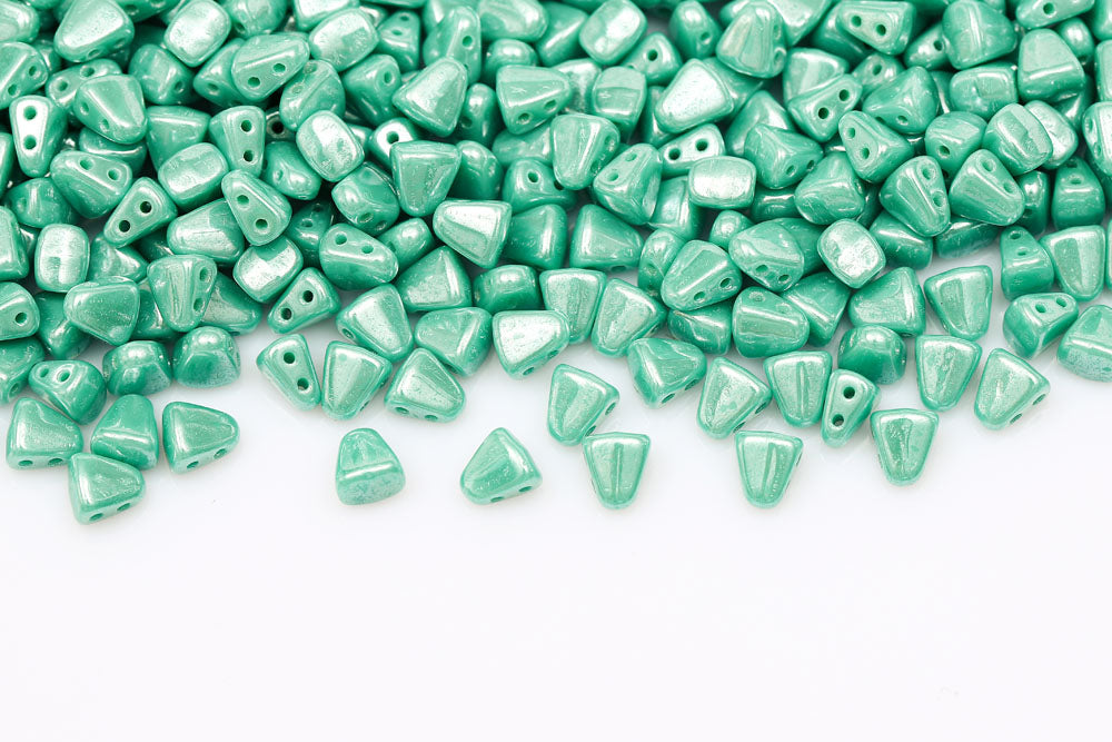 Nib-Bit 6×5mm Turquoise Green White Luster 2-Hole Czech Beads