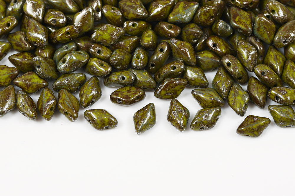 Gemduo 8×5mm Opaque Green Picasso 2-Hole Czech Beads