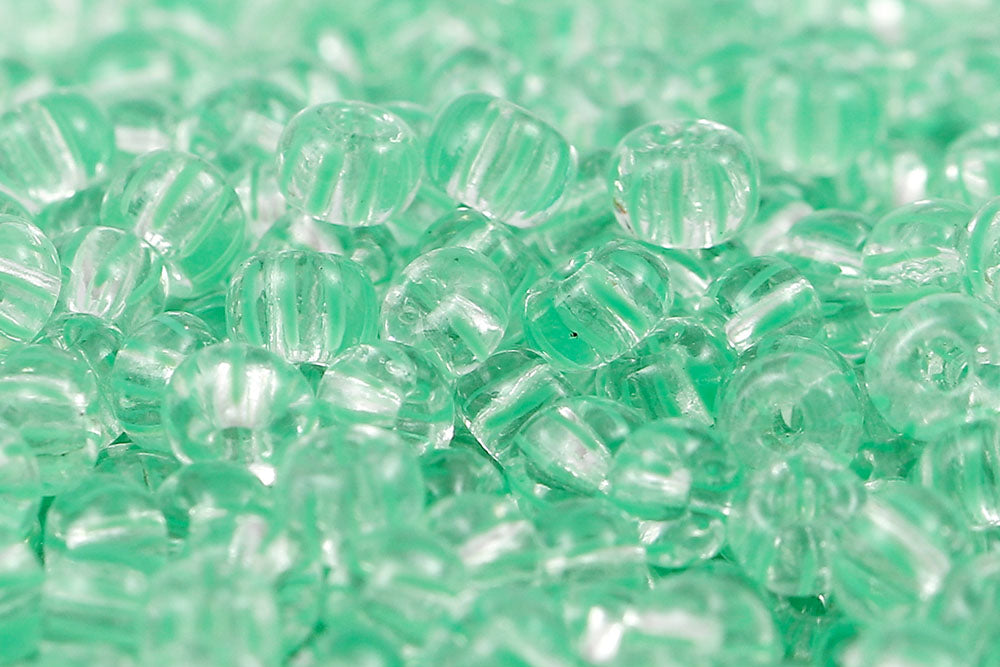 Preciosa Rocailles 6/0 Green Stripes On Crystal Col.00851