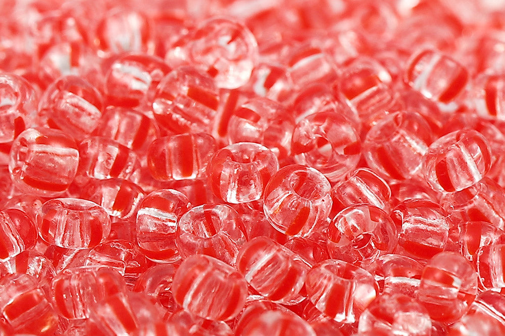 Preciosa Rocailles 6/0 Red Stripes On Crystal Col.00890