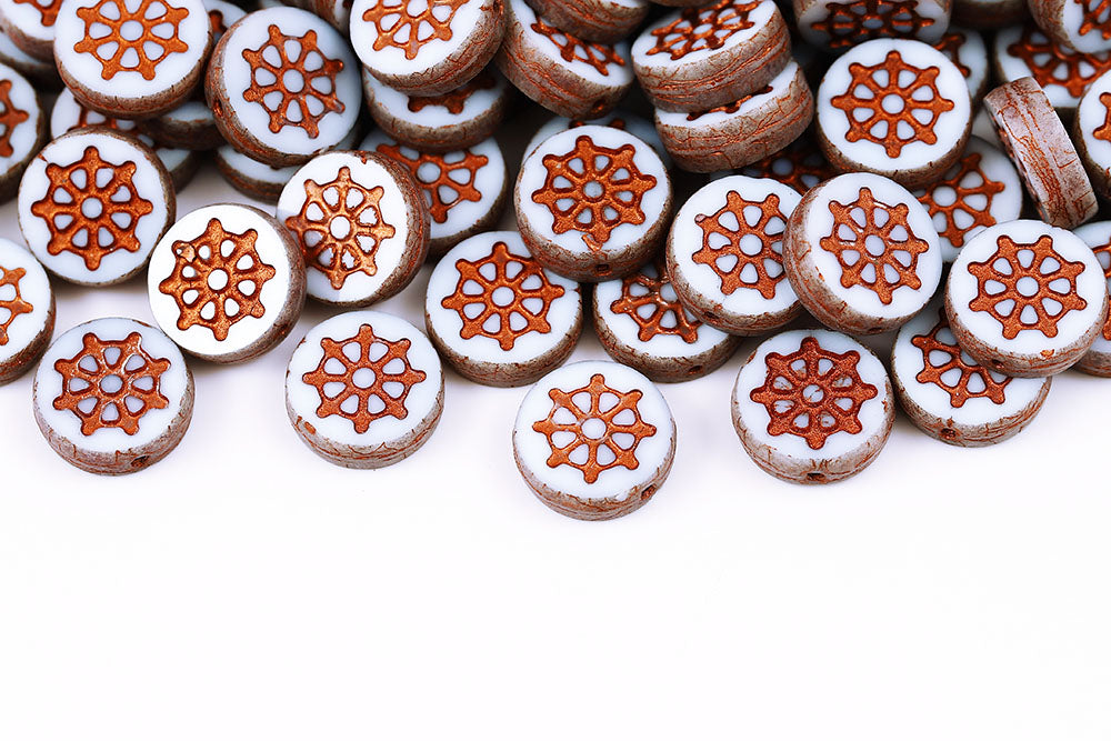 Wheel Coin 12mm Chalk Nebula With Copper 1-Hole Czech Beads