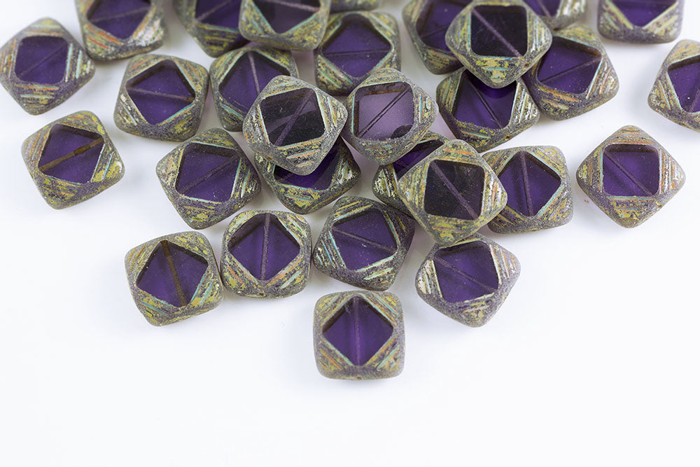 Window Designed 15×15mm Tanzanite Travertine 1-Hole Czech Beads